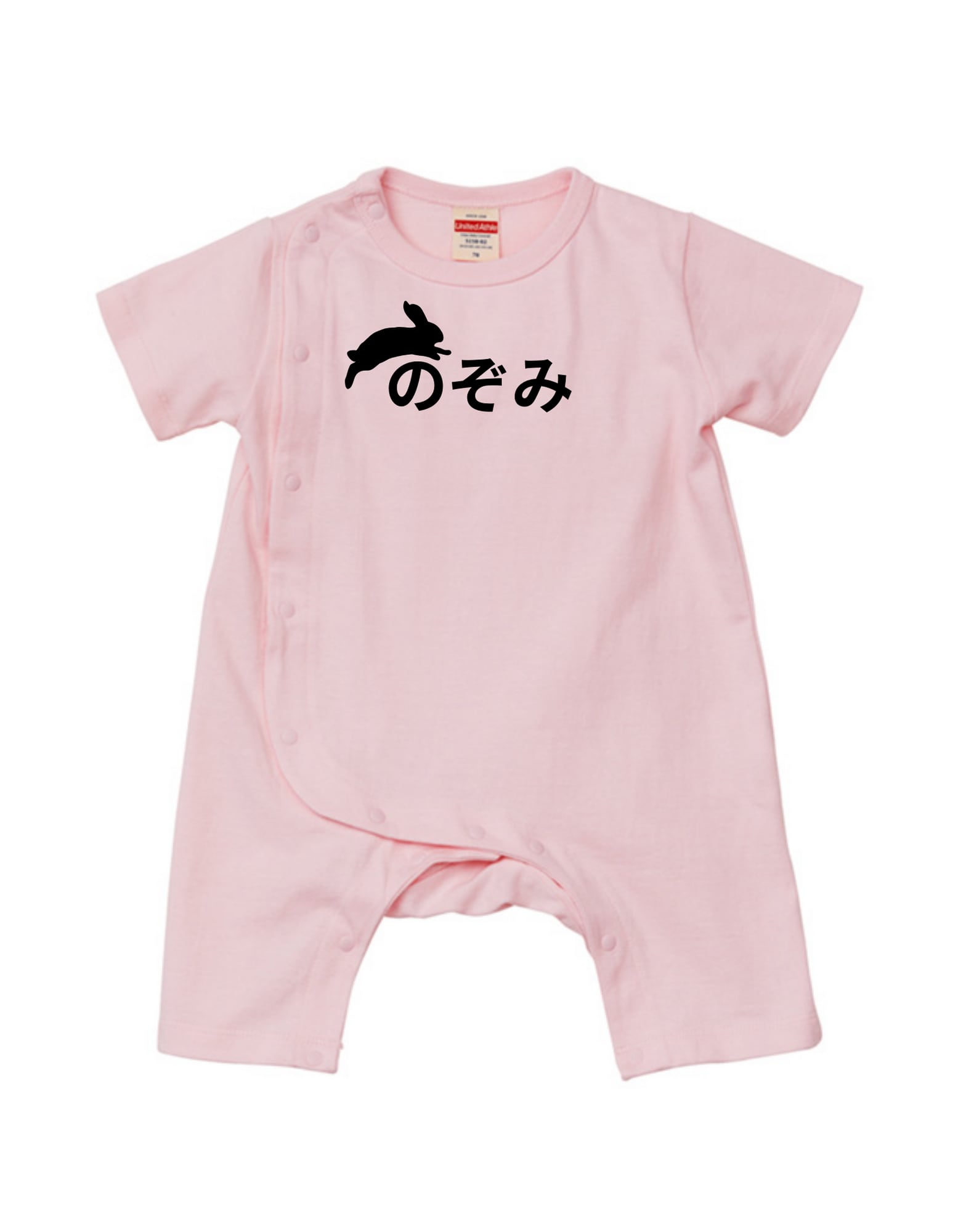 可愛いうさぎのイラストがデザインされた、赤ちゃん用のカバーオールです。心地良い肌触りとしっかりとした作りで、赤ちゃんのお洋服に最適です。生地は柔らかなコットン素材を使用し、赤ちゃんのお肌に安心して着ていただけます。また、名入れサービスもご利用いただけますので、プレゼントにもお勧めです。このカバーオールは、赤ちゃんの成長や活発な遊びを快適にサポートする一枚です。ぜひ、大切な赤ちゃんのためにお買い求めください。
